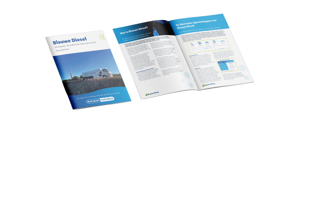 Blauwe Diesel. Waarom? Omdat Blauwe Diesel geen biodiesel (FAME) bevat, CO2-uitstoot vermindert én winterbestendig is. En kun je met Blauwe Diesel stap voor stap verduurzamen.
